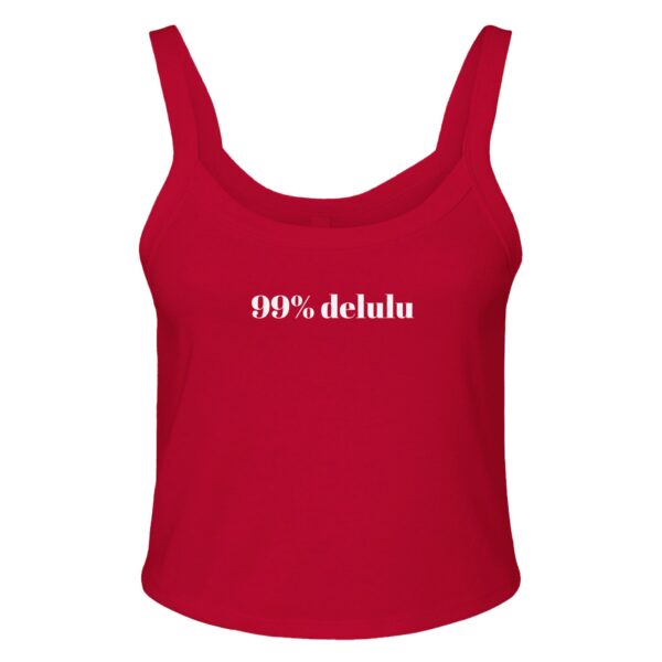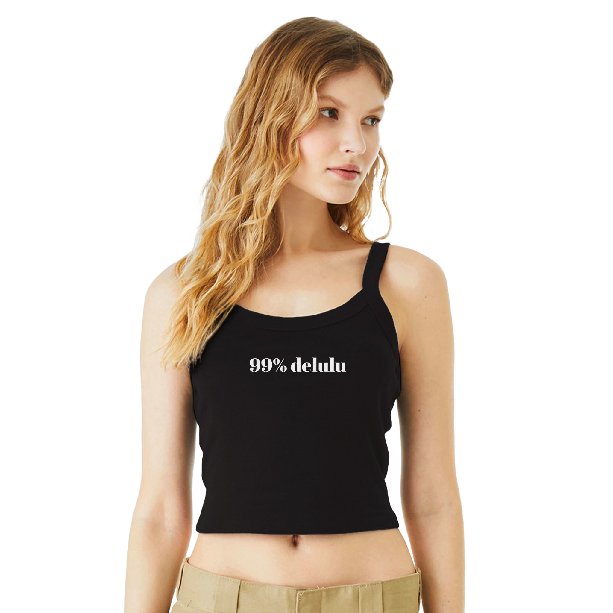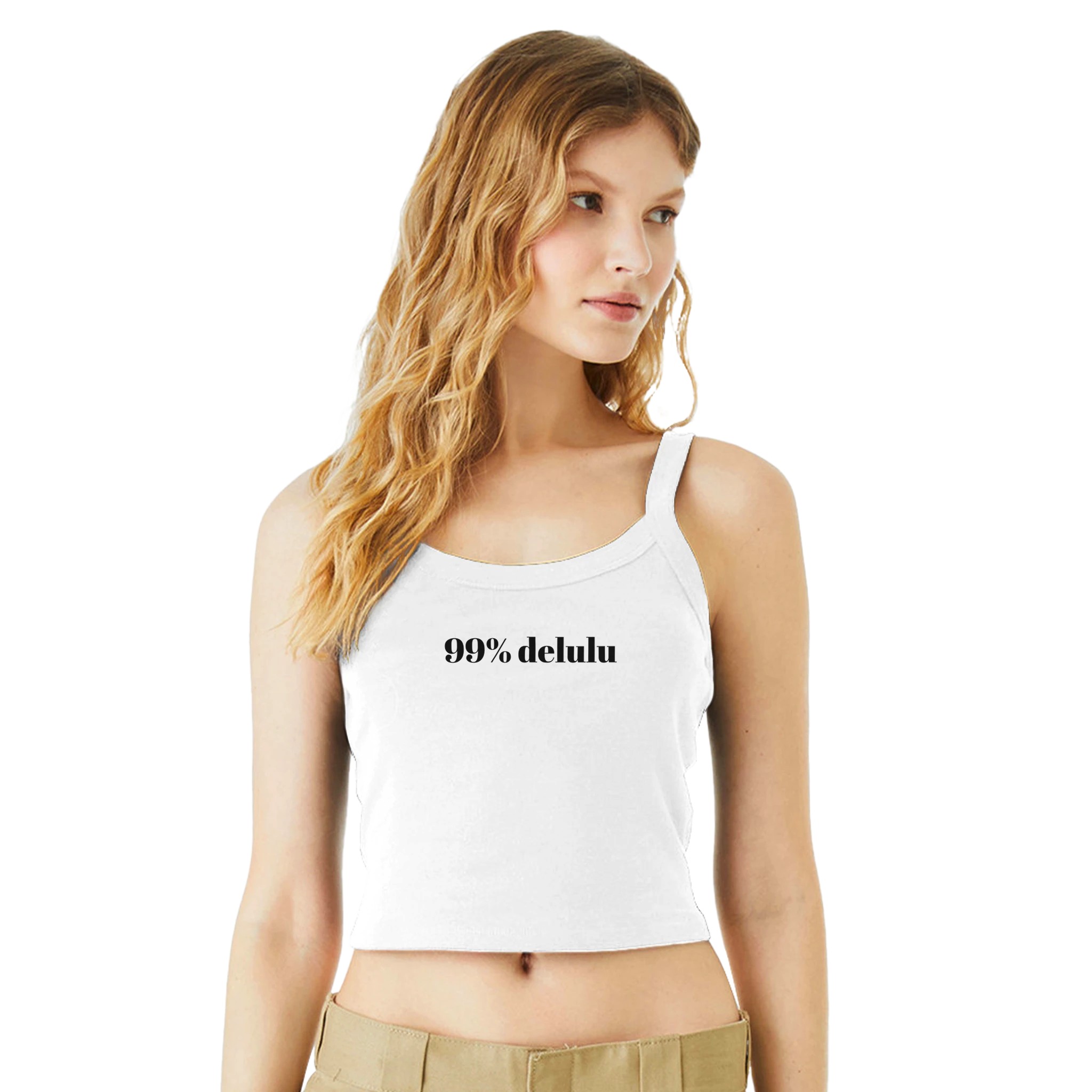 SKU: N/A Category: Tank Tops Tags: 99% delulu tank, casual wear, delusional humor, ethically made clothing, fitted tank top, modern women's wear, ribbed tank top, soft cotton tank, stylish tank top, sustainable fashion, unique graphic tee, versatile tops, womens tank top