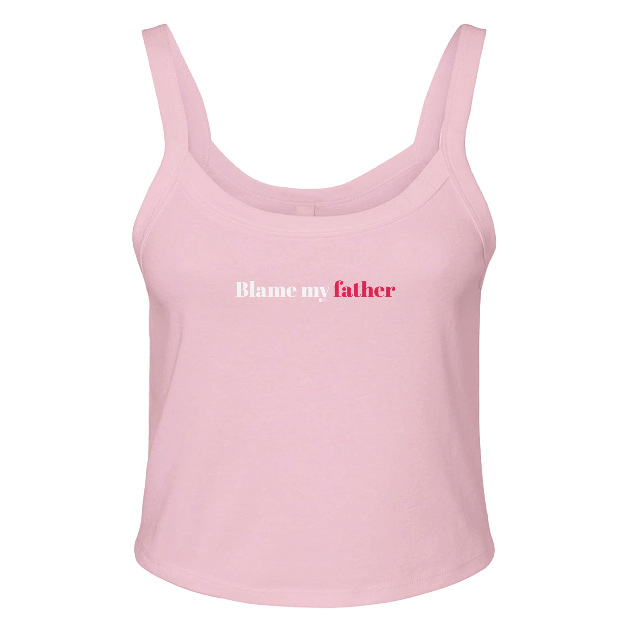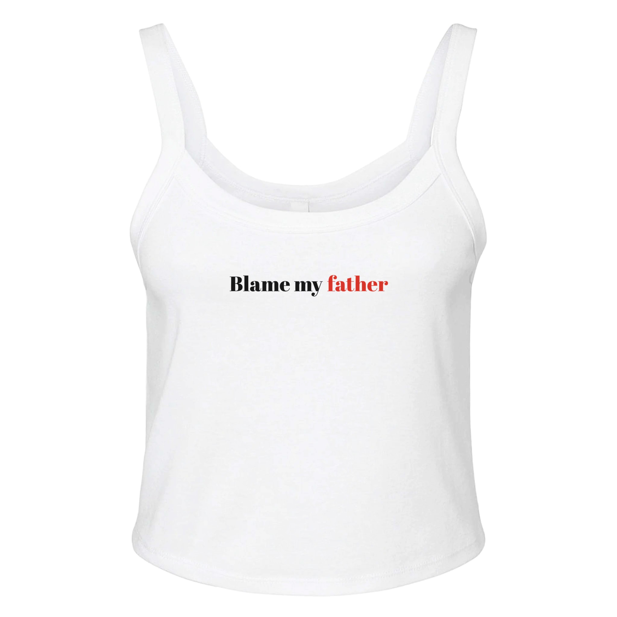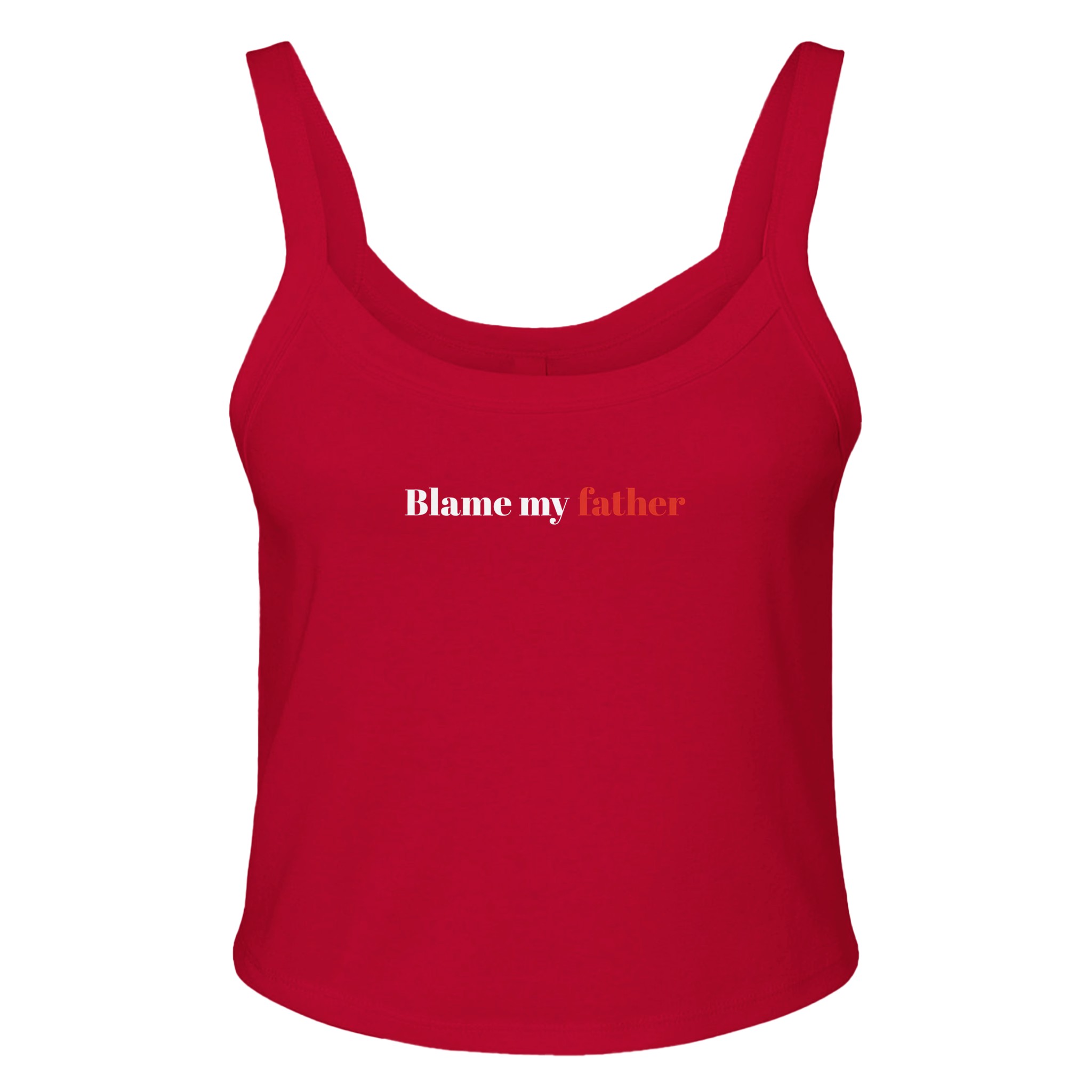 Make a statement with our ‘Blame My Father’ tank top, designed specifically for the bold and unapologetic. Crafted from a premium blend of 52% Airlume combed and ring-spun cotton and 48% polyester, this scoop tank feels exceptionally soft against your skin while ensuring maximum comfort. The unique 1×1 micro rib texture enhances the overall look and feel, making it a perfect addition to any wardrobe.