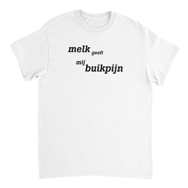 Show off your personality and sense of humor with our ‘Melk Geeft Mij Buikpijn’ t-shirt – the perfect attire for anyone who knows the struggle of lactose intolerance! This heavyweight cotton t-shirt is designed for comfort and durability, making it an essential addition to your casual wardrobe.