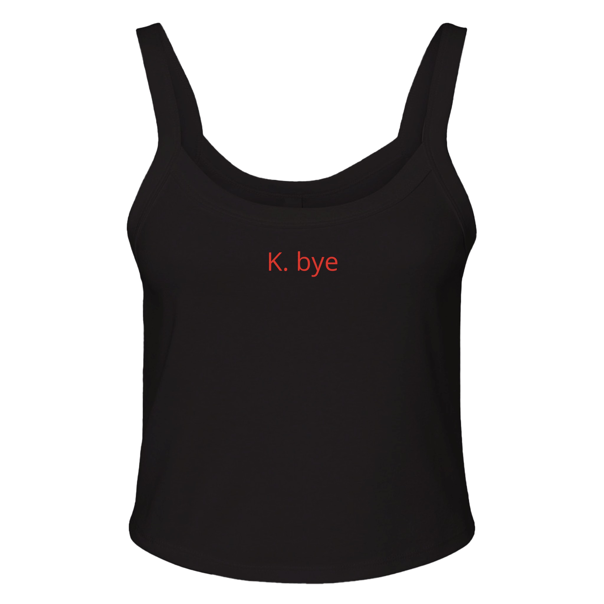 Unleash your personality with our ‘K. bye’ Passive Aggressive Tank Top. Crafted from a blend of 52% Airlume combed and ring-spun cotton and 48% polyester, this tank top is designed for ultimate comfort and a soft touch. The exclusive 1×1 micro rib texture enhances both style and feel, while the elegant fit and stretchy fabric ensure that you move with ease throughout your day. Made sustainably and adhering to ethical production methods, this tank showcases a modern three-quarter length, perfect for layering or wearing solo. Stand out in any crowd and express yourself effortlessly. Get your ‘K.’ tank top today and make a statement without saying a word!