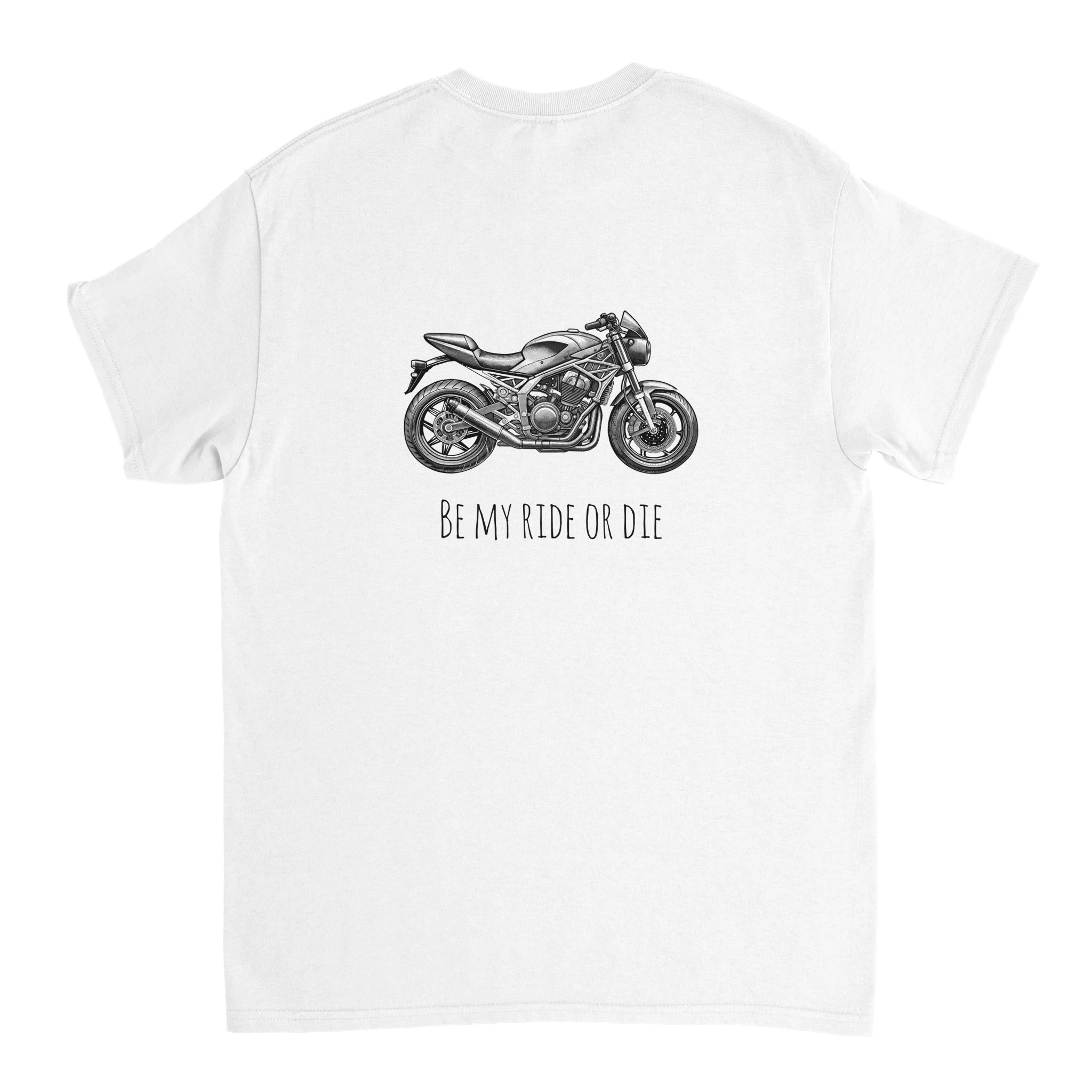 Rev up your style with our Motorcycle T-Shirt featuring the bold and adventurous ‘Be My Ride or Die’ graphic. Perfect for motorcycle enthusiasts and those who live life to the fullest, this heavyweight cotton t-shirt combines comfort and durability with a timeless design.