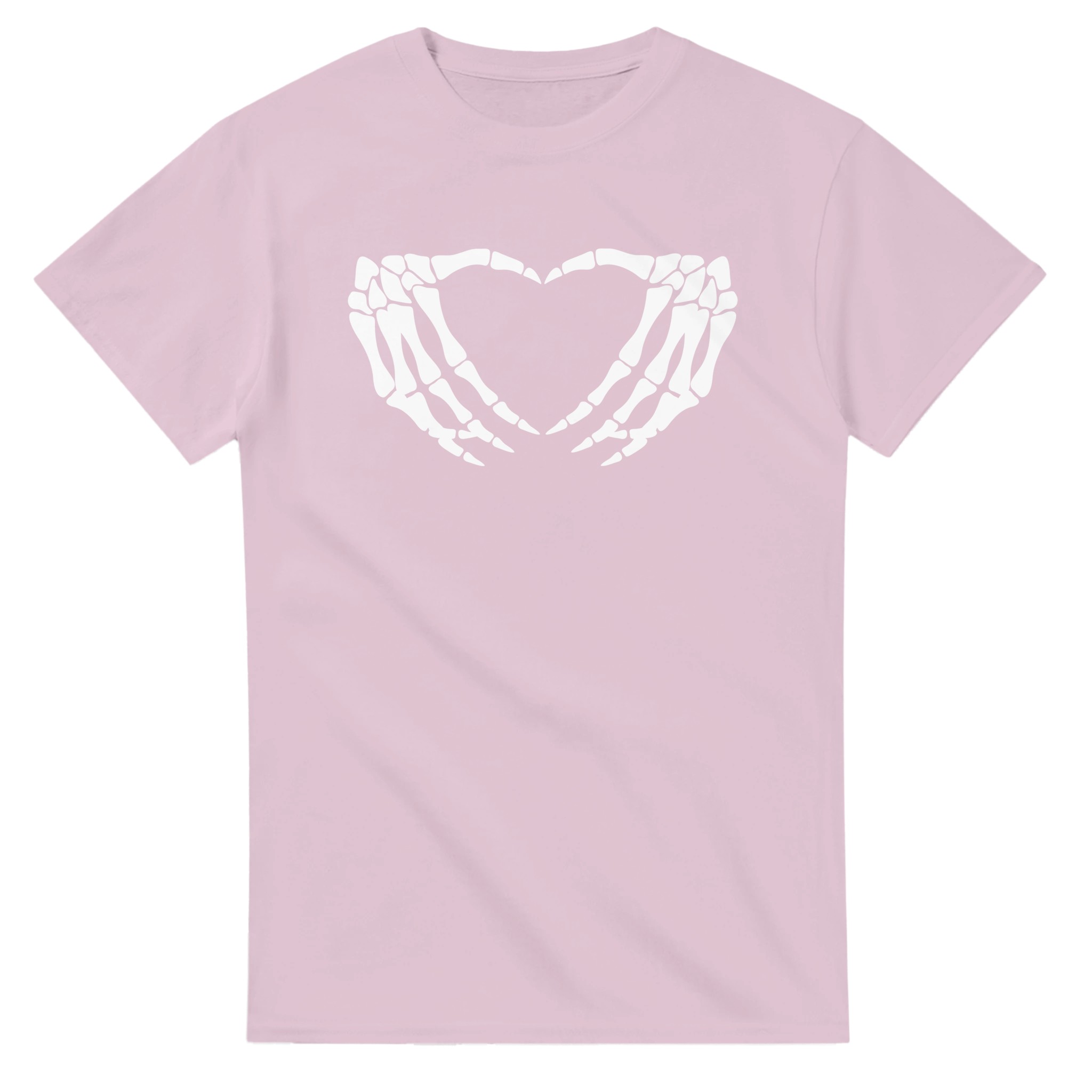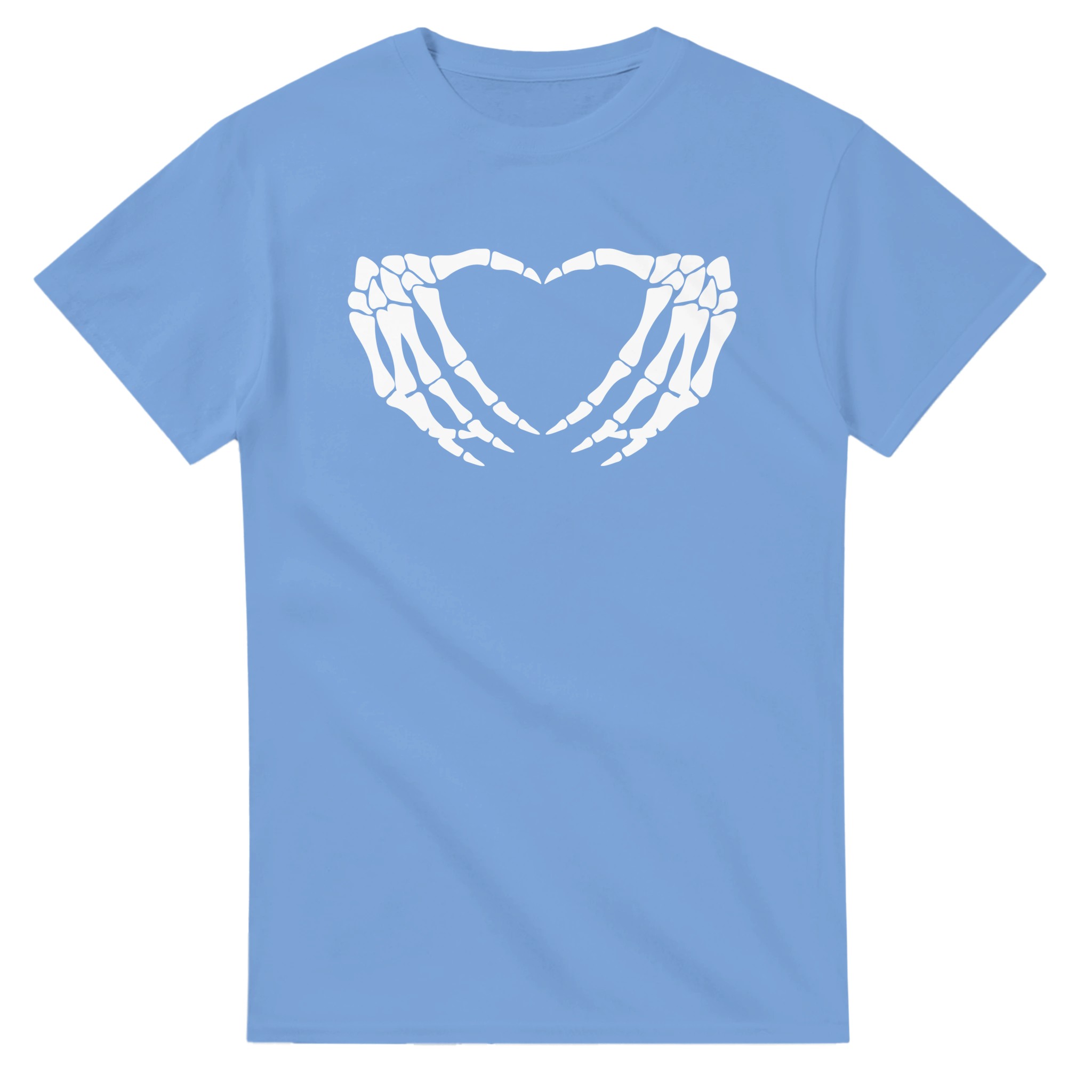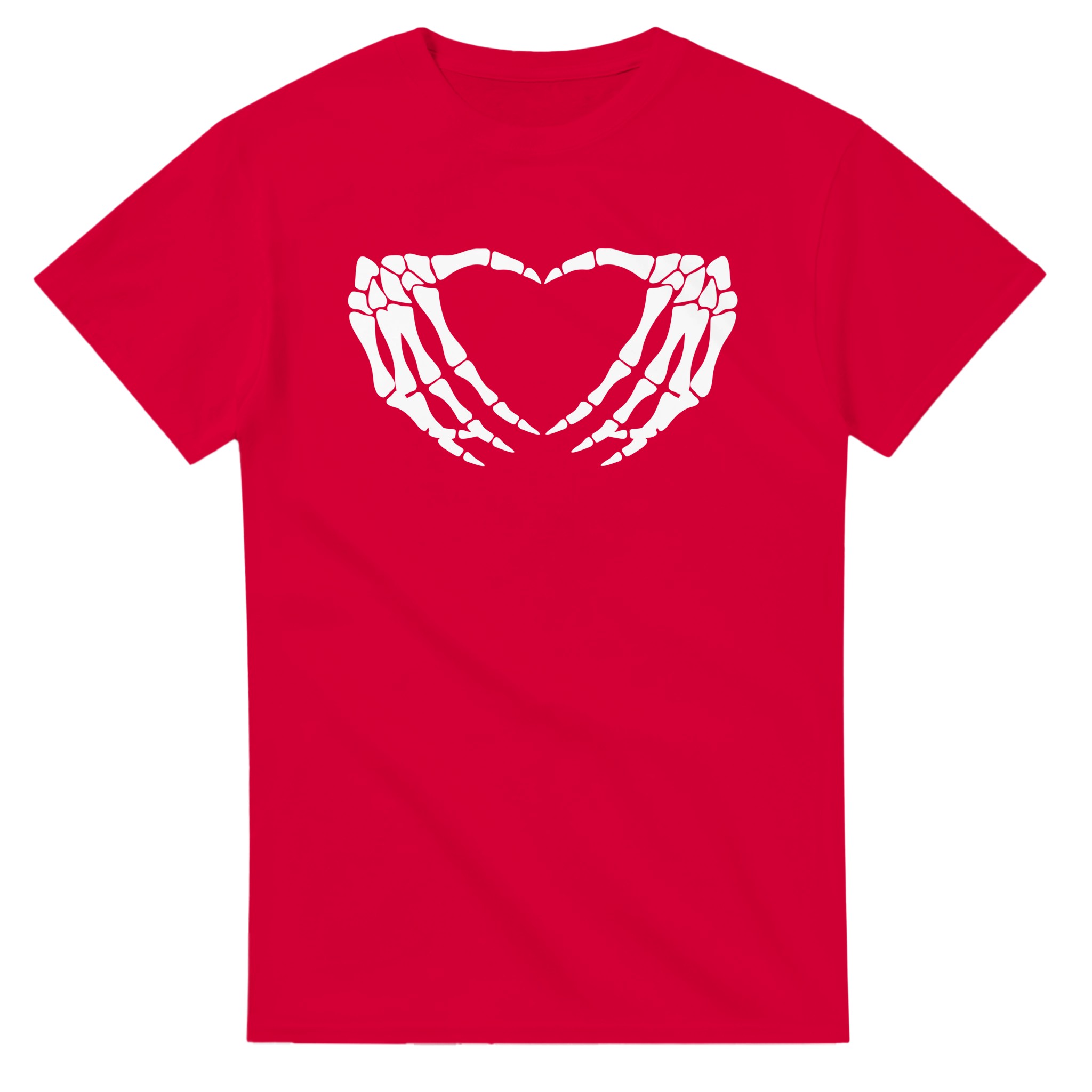 Show off your love in a unique way with our Skeleton Hands Heart T-Shirt. This striking design features skeleton hands forming a heart on the front, making it a perfect statement piece for those who appreciate creativity and a touch of the macabre.