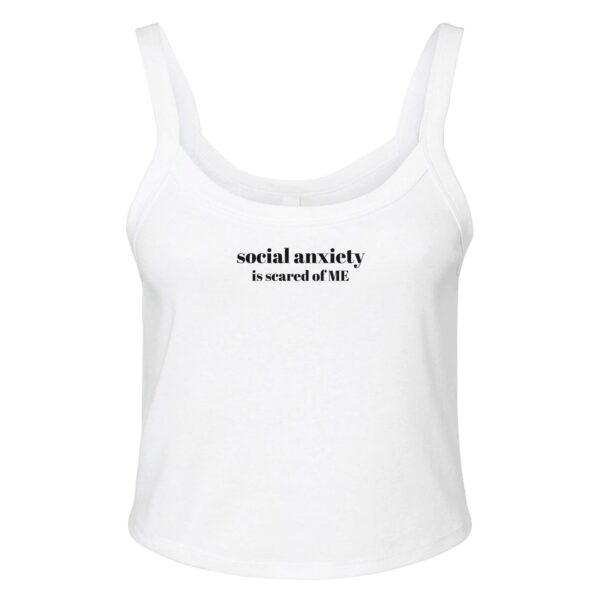 Make a bold statement while staying comfortable with our “Social Anxiety Is Scared of Me” Tank Top. Crafted from a premium blend of 52% Airlume combed and ringspun cotton and 48% polyester, this tank top promises an ultra-soft feel that you won’t want to take off. The unique 1×1 micro rib texture not only enhances the visual appeal but also adds to the overall comfort, making it perfect for casual outings or lounging at home.